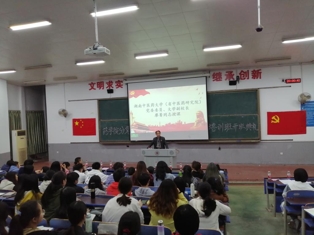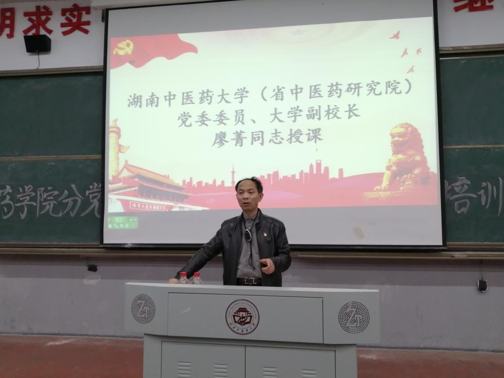 2021年4月26日晚,yl23455永利官网分党校第八期入党积极分子培训班于2506教室顺利开班之后,湖南中医药大学(省中医药研究院)党委委员、大学副校长廖菁同志为入党积极分子进行了第一节理论授课。