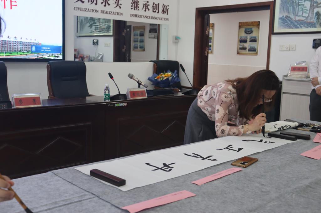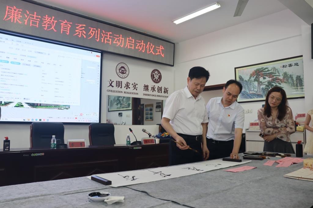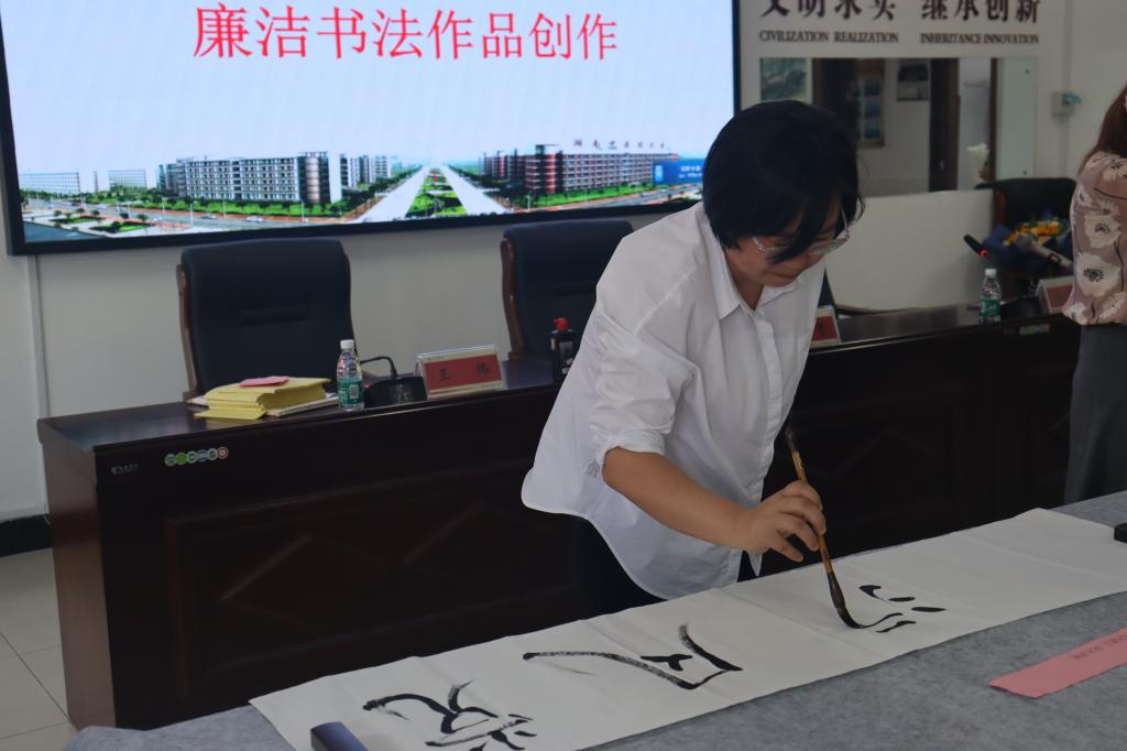 副院长林丽美、副院长覃丽等书法爱好老师也积极参加活动,现场题字,表达“以清为美、以廉为荣”的理念。