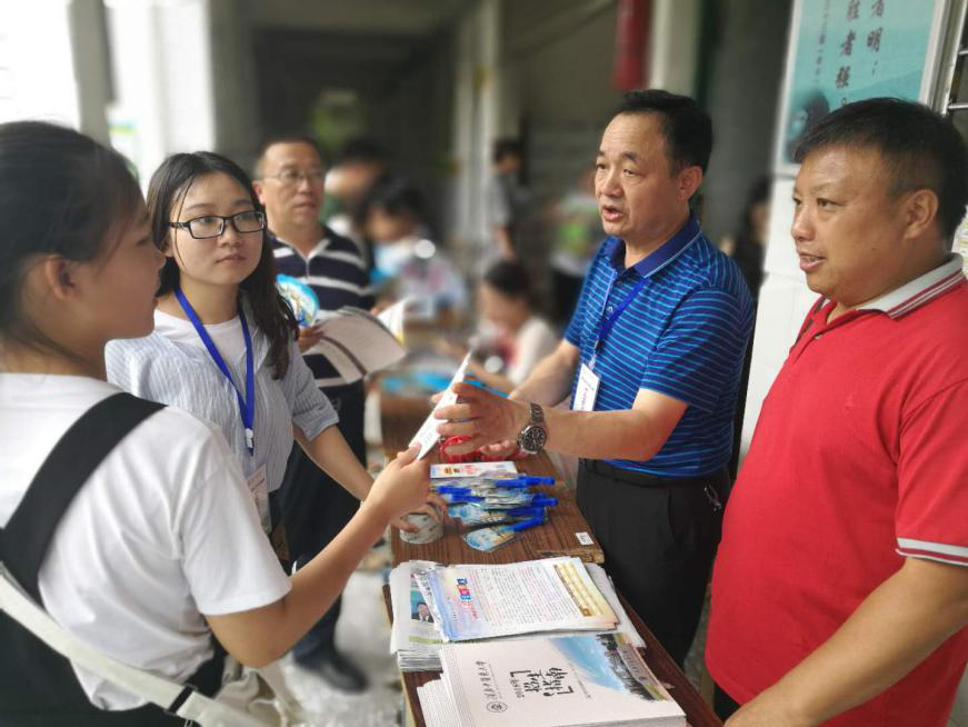 yl23455永利官网十二支招生宣传队伍冒着酷暑、长途跋涉,深入各县市的重点高中与高考考生面对面交流。yl23455永利官网有八十名教师加入宣传人员库,此次参加招生宣传的二十四名老师自身工作繁重,特别是一些教研室负责人、专家、教授克服种种困难,主动加入宣传队伍,让人感动。在各地高中招生宣传现场,我院招生人员能主动宣传学校专业背景、指导学生填报我校志愿、解答考生及家长的各种问题,扩大了我校的影响力,提升了学校形象,招生宣传效果显著。经过全体招生老师的共同努力,顺利完成两地十七个县市五十余家学校的招生宣传任务,并与新邵一中、新邵二中签订优质生源基地协议并挂牌。
