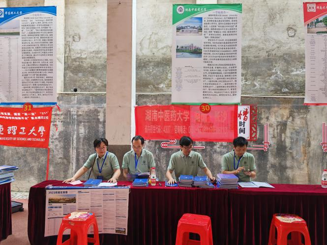根据大学招生工作的统一安排,促进我院生源质量的不断提高,6月25日至28日,我院围绕学校招生宣传工作的相关要求,整体谋划,认真安排部署,先后深入邵阳市区、新邵县、隆回县等7个地区的多所重点高中设点宣传。