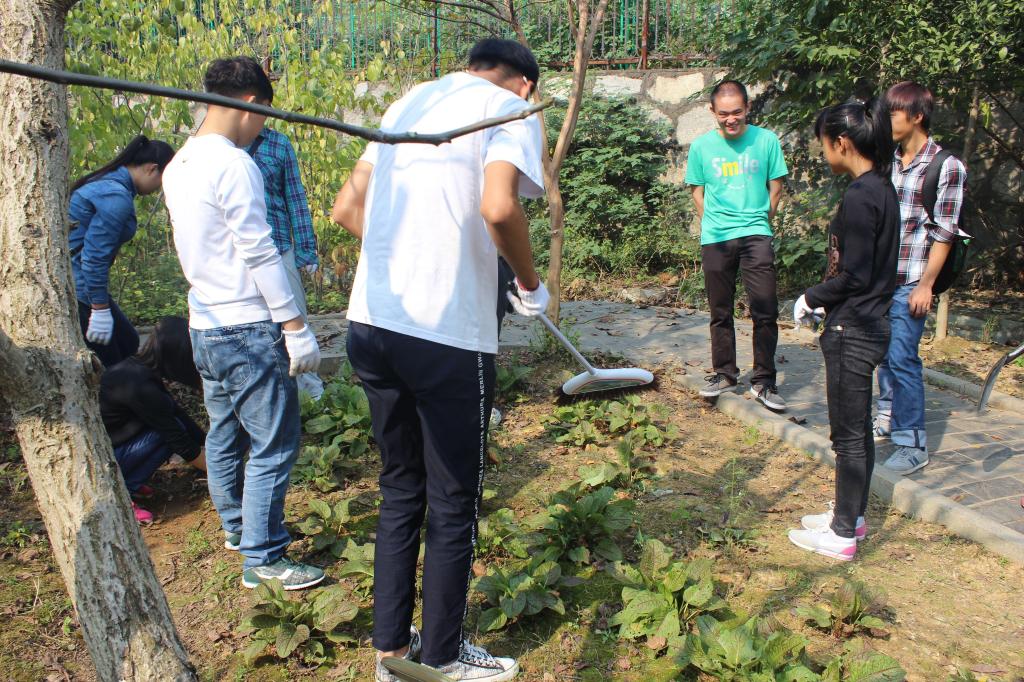 陈乃宏院长宣布“我与药院共成长”系列活动正式开始。在陈院长等专业老师的指导下,各班学生代表有序开展了近一个半小时的药植园清理工作。老师们对药植园提出了开垦荒地、修剪枯枝、拔除杂草等一些建议。当同学们无法辨别中药与杂草时,老师们耐心讲解有关中草药的专业知识。全体志愿者都积极投入,辛勤劳作,将药植园中的杂草基本清理干净。
