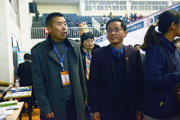 2015年11月28日上午8时,由湖南省教育厅、湖南中医药大学联合主办的“湖南省医药卫生类2016届毕业生专场供需见面会”在我校东塘校区举行。湖南省教育厅副厅长葛建中、学生处处长熊俊钧,省就业指导中心主任曹敏,在湖南中医药大学校长廖端芳、党委副书记秦裕辉的陪同下指导工作,yl23455永利官网党总支副书记、副院长鲁耀邦及yl23455永利官网学生科全体老师也参加了此次供需见面会。约260多家企事业单位进场招聘,我校有就业意愿的2016届毕业生亦到场参加。