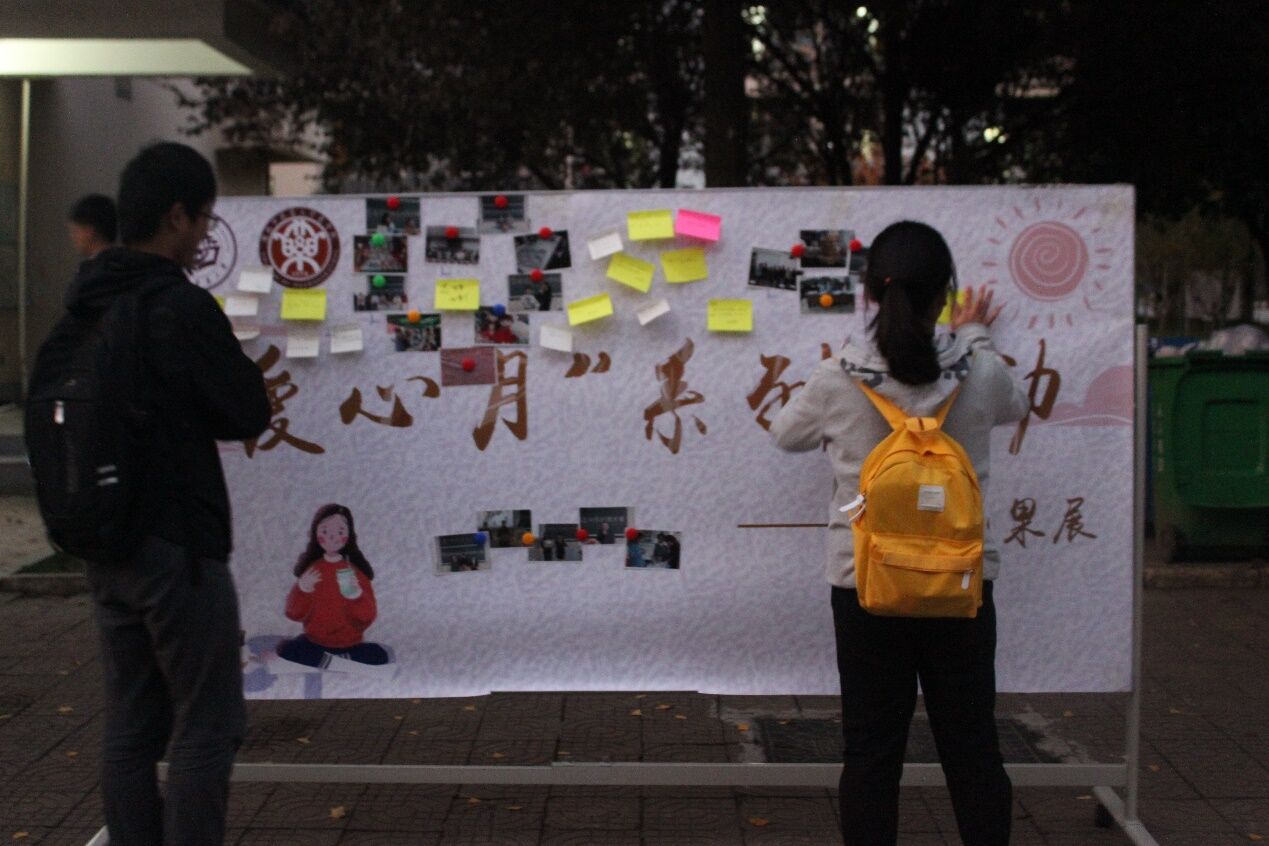 | “矢志奉献,闪耀芳华”活动成果展上同学们在书写便条
