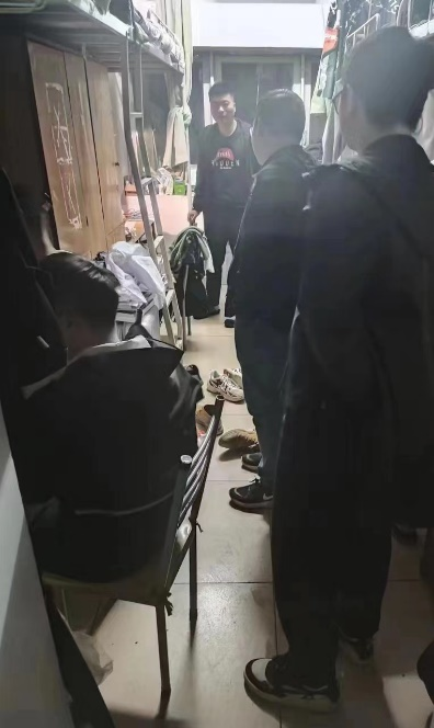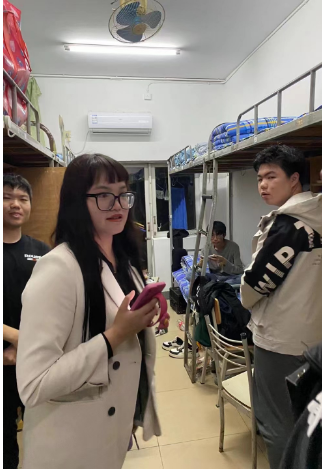 当晚,所有老师于晚上十点三十分在学生宿舍2栋楼下集合完毕。贺书记提出本次查寝工作主要检查学生晚归情况、消防安全情况(宿舍内大功率电器使用、电线排插乱接乱放等)及寝室卫生情况三个方面。