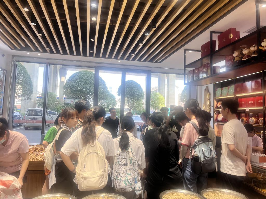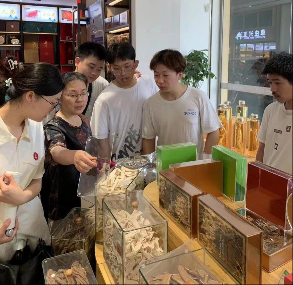 高桥医药流通园的工作人员带领学生们参观了参芝林中药、卫康集中药材店等商户,了解了市场内部分商户从生产、研发、加工、销售、运营、品牌的全产业链发展模式。