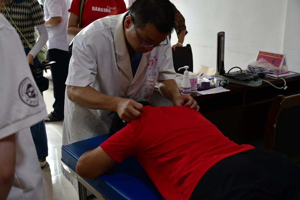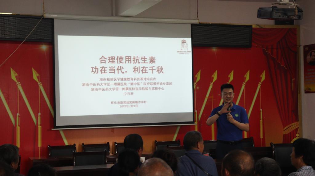 启动仪式结束后,湖南中医药大学附属第一医院专家团队(医学检验与病理中心副主任宁兴旺、针灸推拿康复科副主任余兆安、针灸推拿康复科主任医师叶勇、骨伤科副主任医师聂颖、医学检验与病理中心主管技师苏敏)与三下乡实践团队立即在沙湾村村委会开展义诊服务和爱心赠药活动,并为所有来访村民发放精心熬制的凉茶。专家团队逐一为前来就诊咨询的市民把脉问诊,详细咨询既往病史,耐心解答他们咨询的问题,并向他们科普相关健康知识,使市民们能及时准确了解自身的健康状况。据悉,此次“三下乡”志愿活动为期七天,将广泛开展中医药知识科普与讲座、贫困户和退伍老兵慰问、社会实践调研等活动,为中医药事业传承与发展、为新时代乡村振兴贡献青春力量!