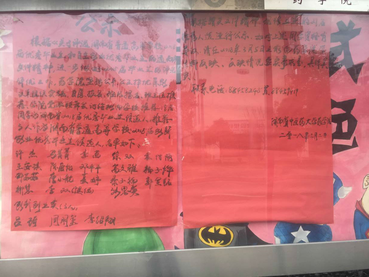 湖南省2018届优秀毕业生yl23455永利官网拟推荐学生公示