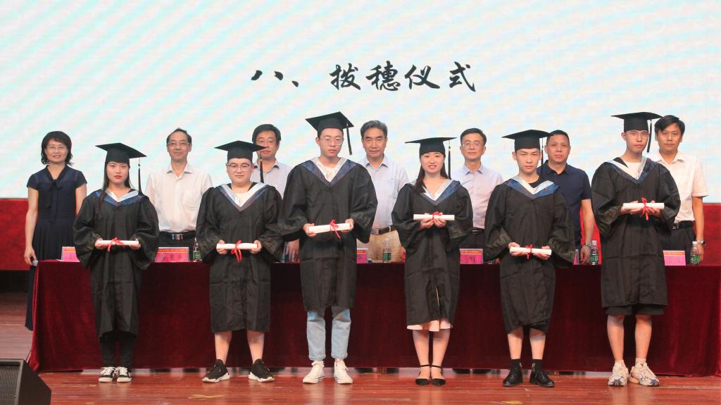 裴刚教授和王炜教授分别宣读了《关于表彰湖南省普通高等学校2019届优秀毕业生的通报》、《关于表彰到新疆基层就业毕业生的决定》以及《关于表彰参军入伍毕业生的决定》,由yl23455永利官网领导为受表彰同学颁发证书。典礼最后,领导为毕业生代表进行拨穗,为大学四年画上圆满的句号。
