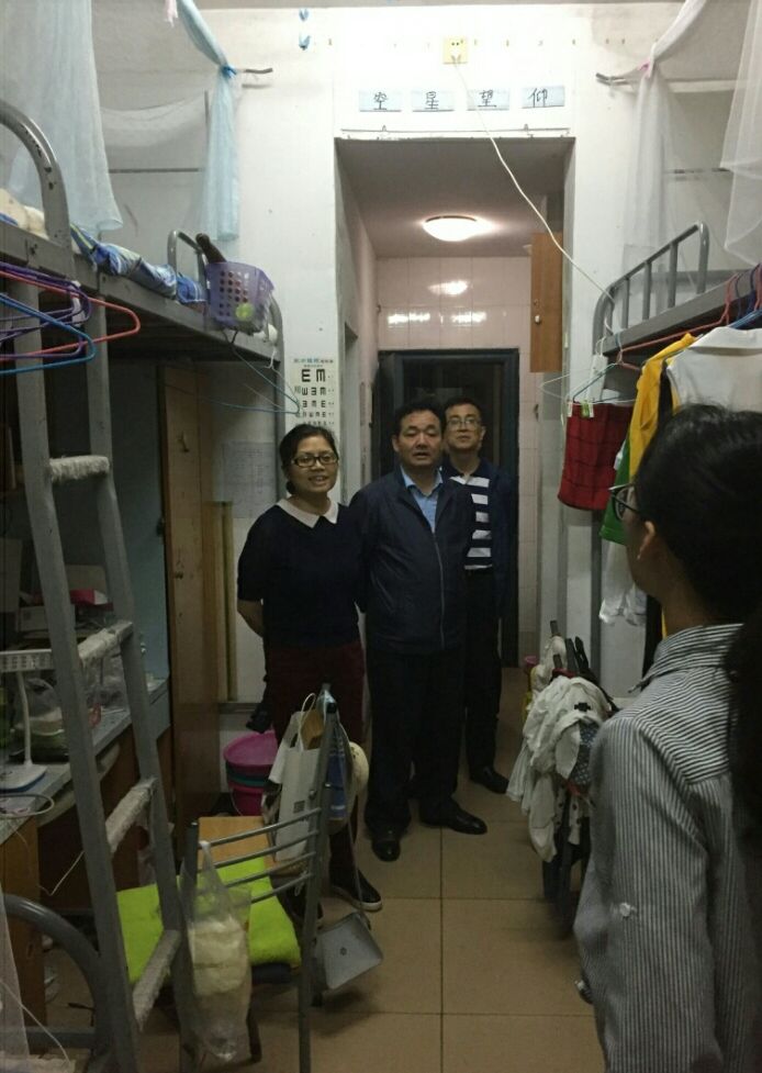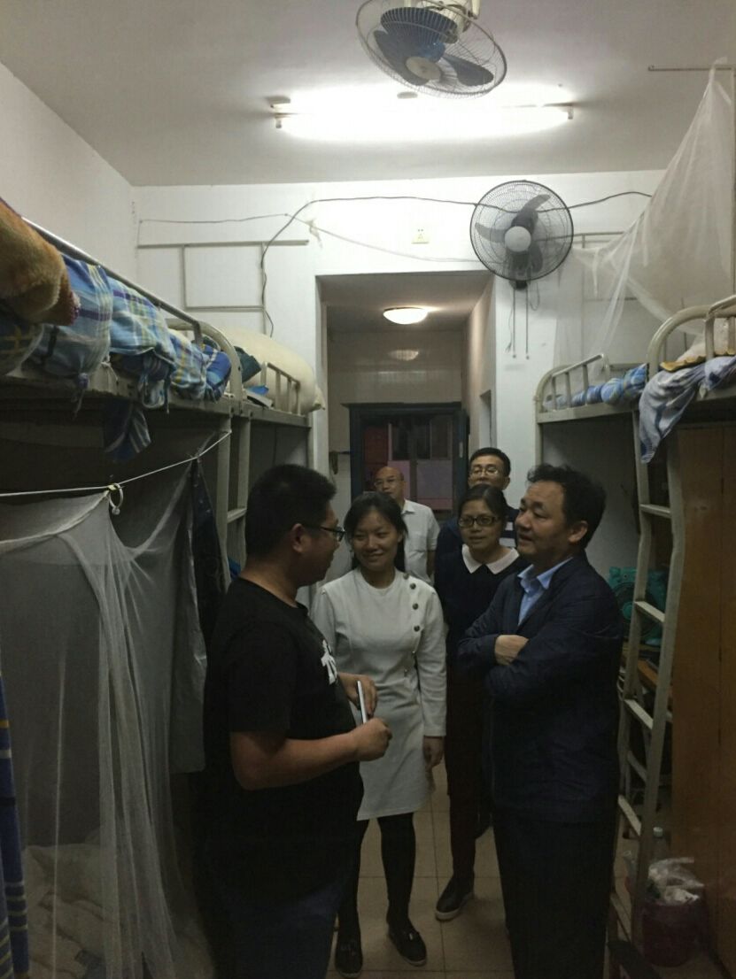 6月6日晚7点,yl23455永利官网党委书记张秋雁教授、党委副书记副院长刘向前教授、副院长裴刚教授、办公室主任黄绍国老师以及学生科老师走访了yl23455永利官网2017届毕业生宿舍。