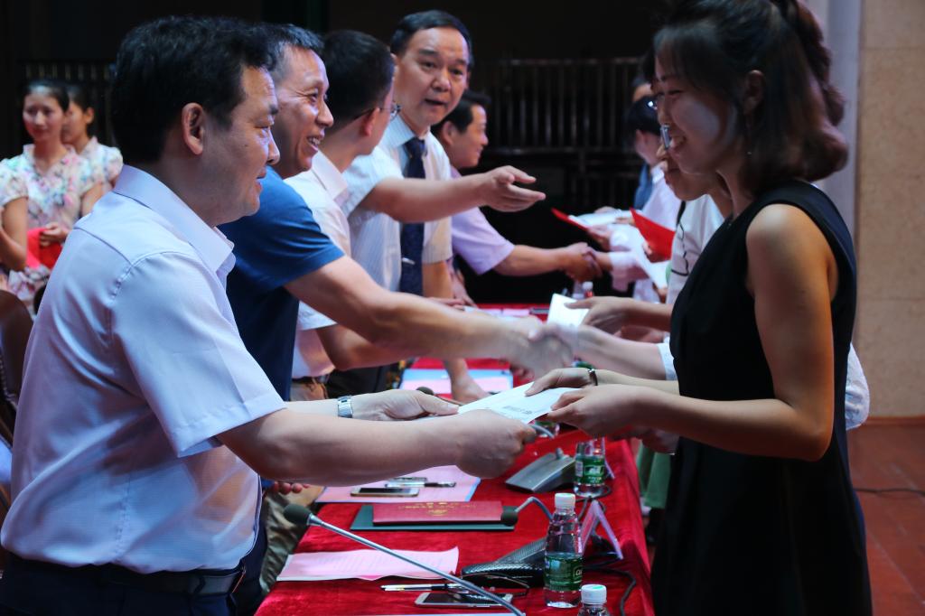 随后,裴刚教授宣读了《关于准予2017届本专科毕业生毕业和授予学位的决定》,张秋雁教授宣读了《关于表彰湖南省普通高等学校2017届优秀毕业生的通报》,宣读完毕后,yl23455永利官网领导及嘉宾为优秀学生代表颁发了相关证书。接着,刘向前教授对赴新疆西藏及西部计划三位优秀学生进行表彰,yl23455永利官网领导及教授代表为三位同学颁发了证书及奖金。