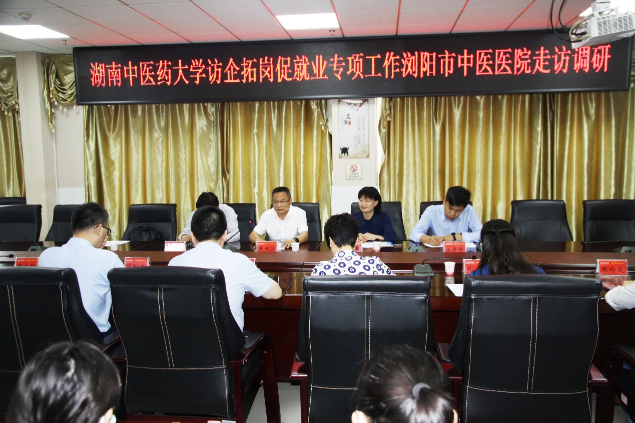 5月26日,湖南中医药大学党委副书记易刚强率yl23455永利官网党委书记曹一瑜、副院长王炜、党委副书记杨岩涛等一行5人赴浏阳市中医医院、湖南尔康制药股份有限公司、湖南迪诺制药有限公司开展“访企拓岗促就业专项行动”,通过实地走访调研,就深化交流合作、人才培养、实习就业等工作与用人单位进行充分交流,为全力促进毕业生充分高质量就业奠定基础。
