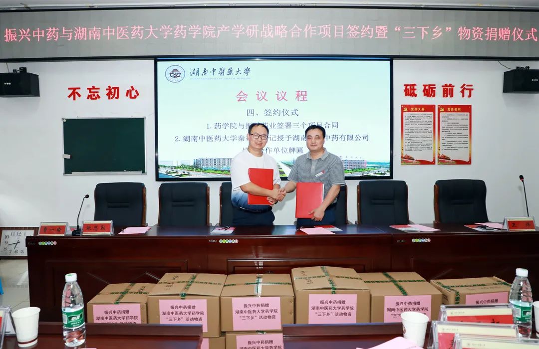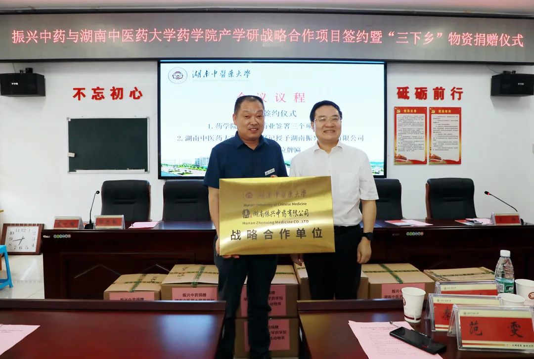 湖南中医药大学党委书记秦裕辉为振兴中药授牌“战略合作单位”