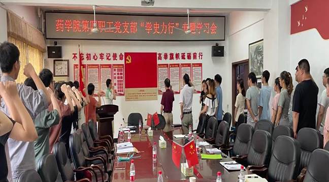 yl23455永利官网第四职工党支部书记江星明同志以《中国共产党百年奋斗历程与启示》为主题给全体党员上了一堂生动、深刻的党史专题党课。党课围绕重温党的100年光辉历程,深刻感悟党的初心使命和践行初心使命。党课中讲到全体党员应充分利用空闲时间自主学习党史,要在学习党史中感悟思想伟力,在学习党史中深化对党的性质宗旨的认识,要进一步学习弘扬老一辈无产阶级革命家的拼搏奉献精神,切实增强工作的责任感、使命感、紧迫感,把党史学习教育成效转化为推动工作效率的强大动力,为中医药教育事业贡献自己的一份力。党课后,在yl23455永利官网第四职工党支部江星明书记领誓下,yl23455永利官网党委书记曹书记和第四支部全体教师党员以及第一学生党支部第一党小组、第二学生学生党支部第二党小组学生党员一起高举右手,面对党旗庄严宣誓,重温了入党誓词。
