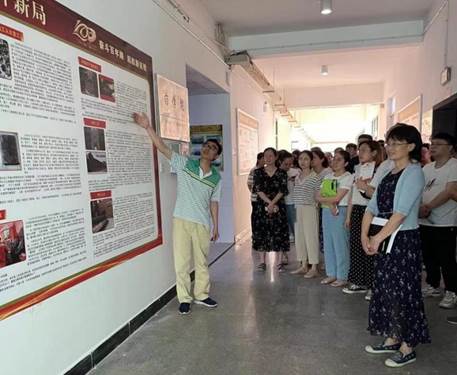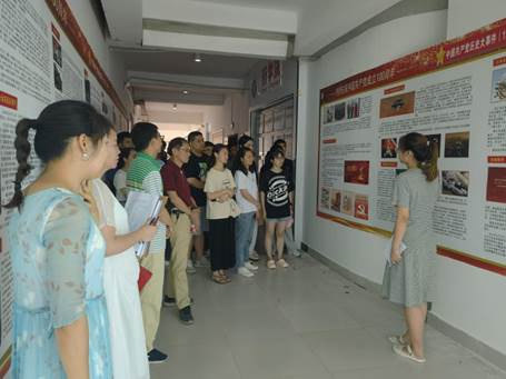 宣誓后,全体教师党员和学生党员一起在《中国共产党100年历史大事件》的党史陈列长廊进行进一步党史学习教育。在江星明、徐菲、张智敏、林艳同志及第二学生支部第二党小组组长黄明娟同学分别领学了部分党史大事件后,全体党员们在党史长廊继续开展自主学习。