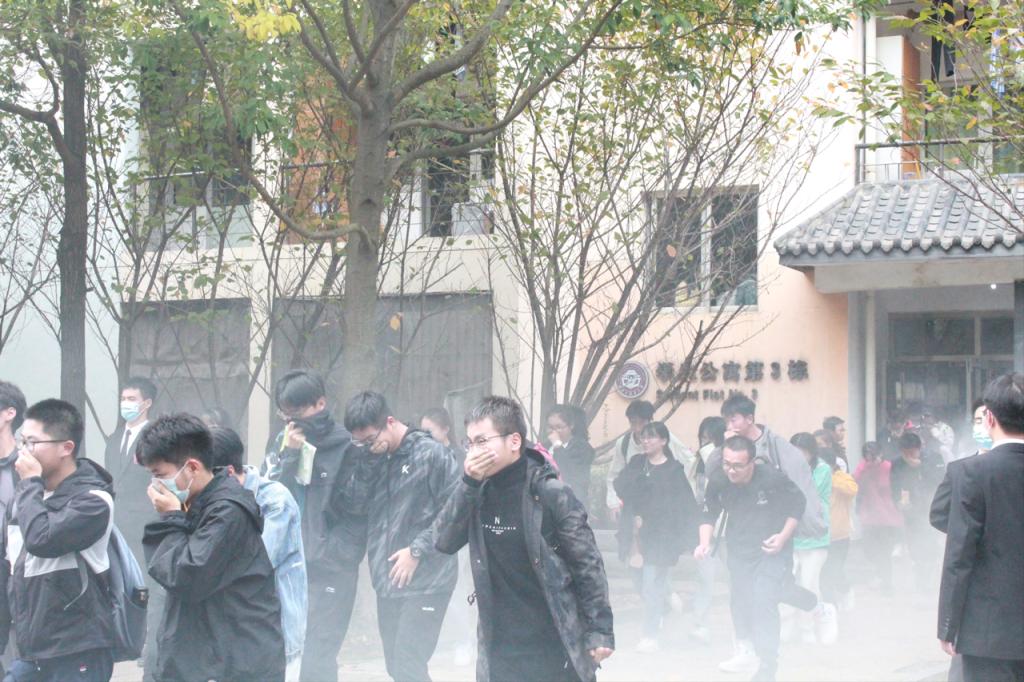 消防知识讲座结束后,消防安全演习在三栋学生公寓展开。yl23455永利官网党委委员杨岩涛老师、yl23455永利官网学生科科长王颖斌老师、yl23455永利官网学生科周萍老师参与此次演习。伴随着警报声,同学们用湿毛巾掩住口鼻,按照逃生路线,弯腰穿过阵阵浓烟,有序撤出寝室楼。整个消防演习在工作人员的组织下有条不紊地进行着。演习结束后,学校保卫科朱策老师向在场师生展示了灭火器的操作方法。杨岩涛老师使用灭火器的正确行为,为在场老师与同学作出了良好示范。