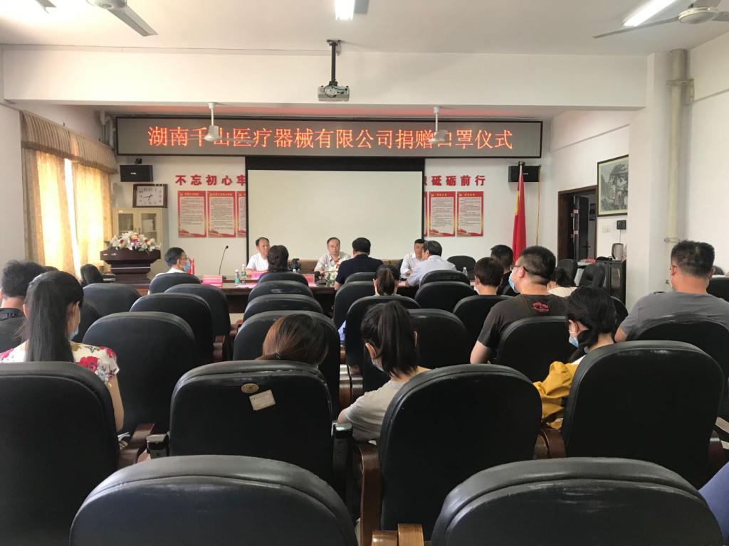 院长夏新华介绍与会来宾,对湖南千山医疗器械有限公司的乐善之举表示诚挚感谢与高度赞赏,随后,现场人员共同观看公司宣传视频,湖南千山医疗器械有限公司秉持先进的经营理念,主要生产无菌真空采血管、无菌采血针、医用口罩等种类丰富的医疗产品,其产品优势突出,质量优良。