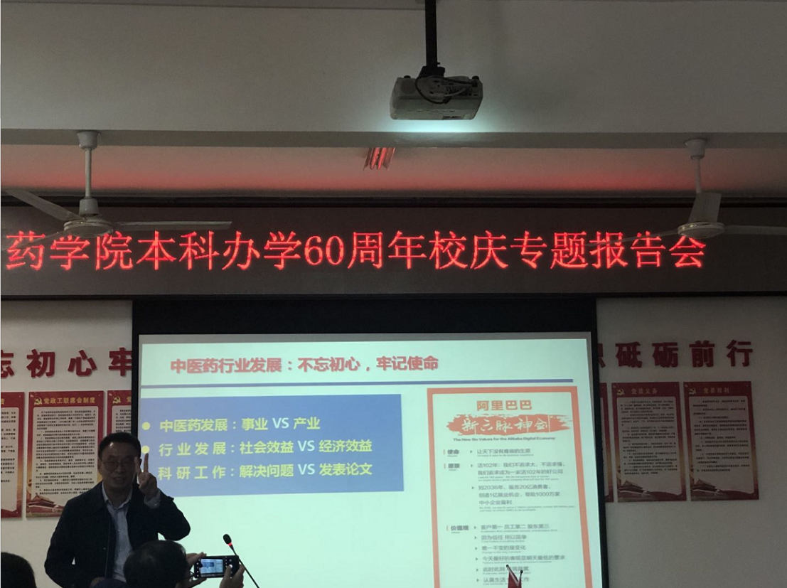 随后,我院杰出校友全军中药研究所所长肖小河教授作题为“中医药科学发展:新时代,新策略”专题讲座。他指出,随着我国社会发展进入新时代,对中医药服务能力提出更高要求,如何更好地发挥中医药传统特色和优势,是新时代赋予中医药人的重大使命。在中医药发展的新时代新征程中,要充分认清中医药发展的严峻形势和存在问题,准确找到影响中医药科学发展的深层次原因,充分利用中医药发展的大好机遇,进一步强化和践行以人民健康为中心的中医药发展理念,精准聚焦制约中医药发展的关键问题,同心勠力,攻坚克难,进一步促进我国中医药事业的发展。