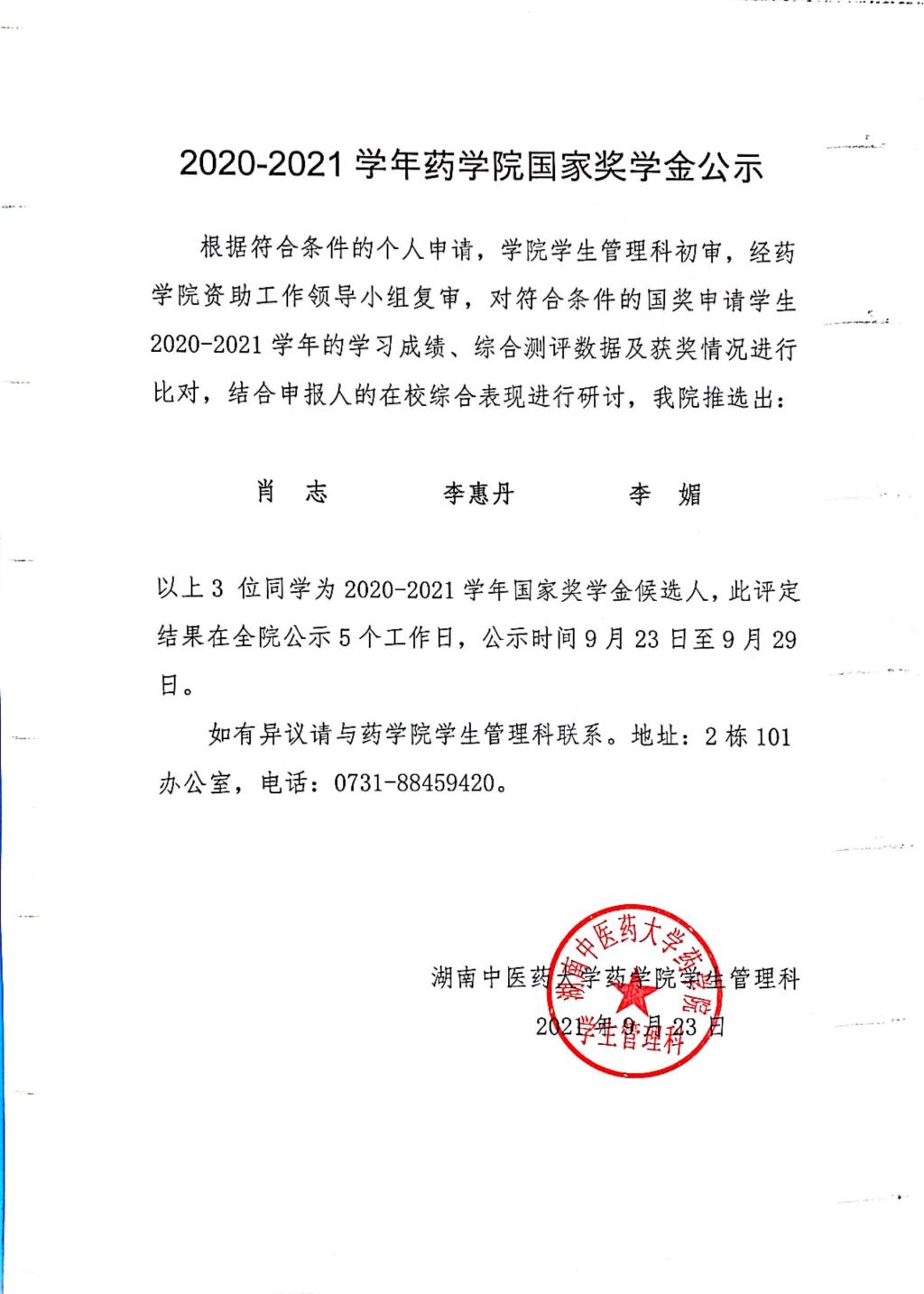 2020-2021学年yl23455永利官网“傅·唐木林励志奖学金”公示
