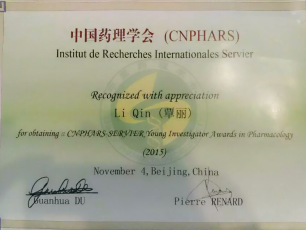 “中国药理学会-施维雅青年药理学家奖”是中国药理学会与法国施维雅研究院(SERVIER)于1997年共同设立的,旨在表彰和鼓励中国青年药理学工作者做出的优异成绩,是国内从事药理学研究的青年药理学家的最高荣誉。