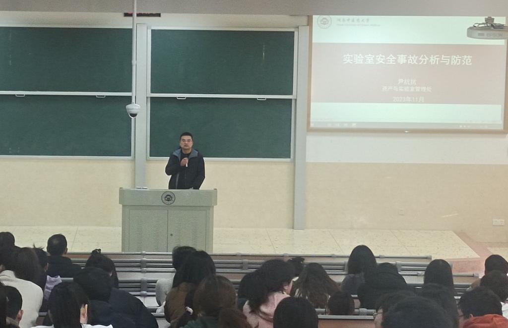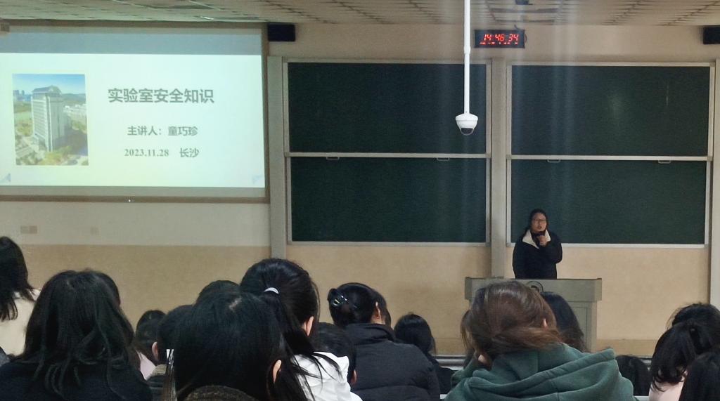 童巧珍从实验室危化品管理、实验室试剂管理、实验室用电安全管理和实验室设备安全管理四个方面进行了详细介绍。并强调我院要始终坚持“安全第一、预防为主、教育在前”的工作作风,将师生的生命安全和实验室安全放在工作的首位。