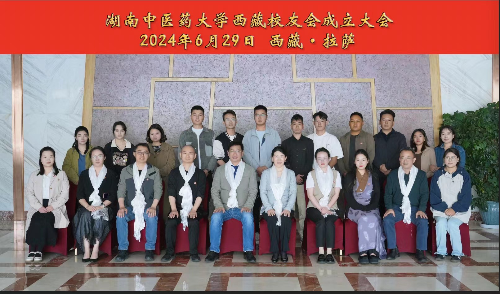 6月29日,在距离星城长沙三千余公里的西藏高原,湖南中医药大学西藏校友会成立大会在雪域明珠拉萨市召开。校党委委员、组织人事部部长焦珞珈,yl23455永利官网院长王炜、校友联络服务中心负责人和30余名西藏校友欢聚一堂,畅叙友谊。大会上审议并通过《湖南中医药大学西藏校友会章程》,选举2000级药学专业校友陈文燮任名誉会长,2000级药学专业校友陈晓明任会长。