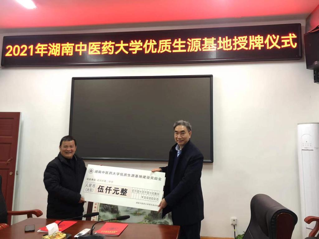 夏新华代表湖南中医药大学授予武冈二中“优质生源基地”