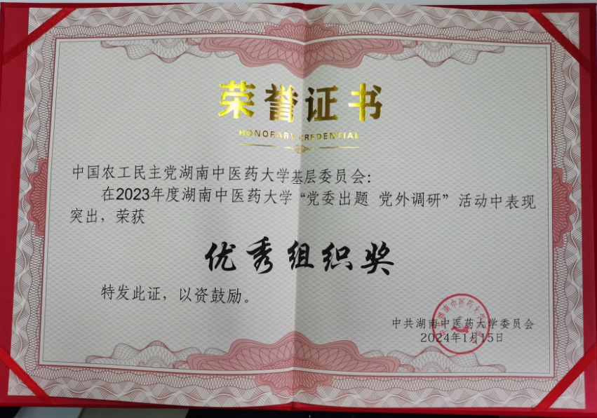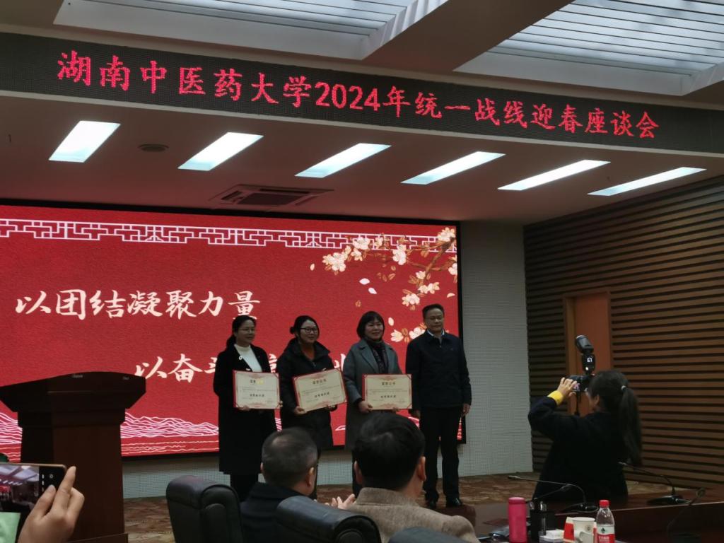会上,农工党湖南中医药大学基层委员会获我校2023年度“党委出题、党外调研”活动优秀组织奖;党外知识分子代表人士崔培梧工作室成功获批立项。