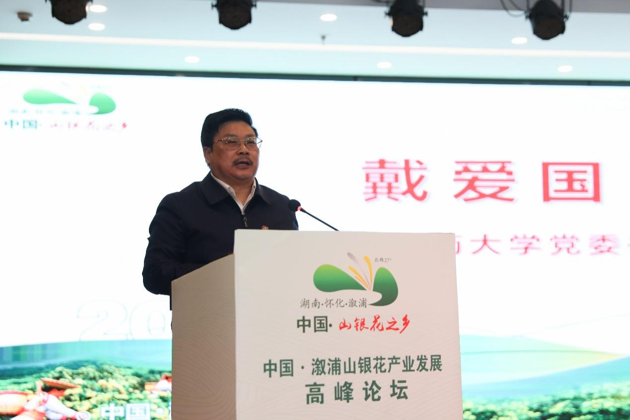 论坛上,戴爱国发表讲话并主持学术交流活动,表示大学及yl23455永利官网应大力支持溆浦县人民政府建设“国际山银花中心”,推进溆浦山银花的科研攻关、产业升级和高质量的发展。