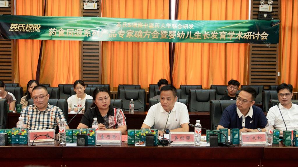 本次会议首先由湖南省健康产品与生命科技工程技术研究中心主任肖作为对两款英氏功能性婴幼儿膏状辅助食品(六物膏和枇杷膏)的组方及组方依据进行了详细介绍,专家组对该两款产品进行了确方,并对秋月梨膏、清清葆梨膏进行产品品鉴。后续,专家们与英氏参会人员就婴幼儿清热润肺、健脾开胃和清火消炎机理及解决方案等相关问题进行了探讨和交流。