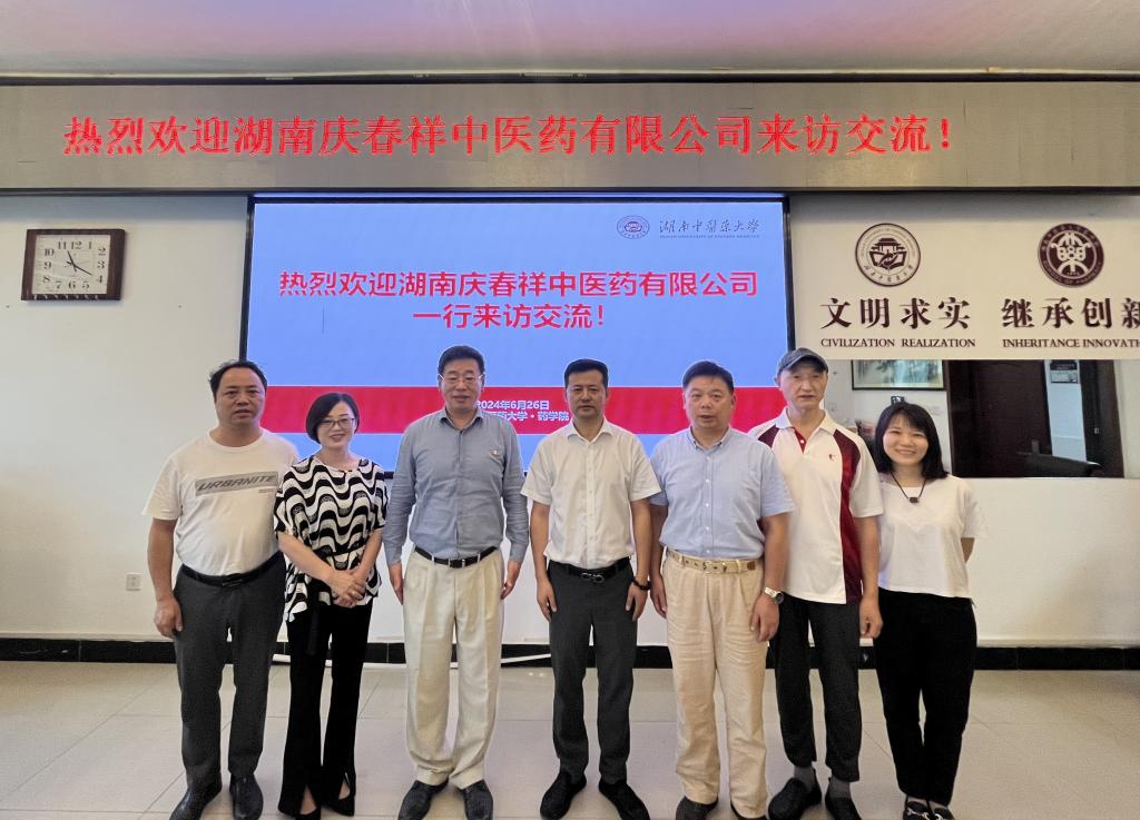 6月26日,我院与湖南庆春祥中医药有限公司开展产学研合作交流会。学院院长王炜,湖南庆春祥中医药有限公司董事长蔡晓卫、质量部部长伍孝容出席会议。