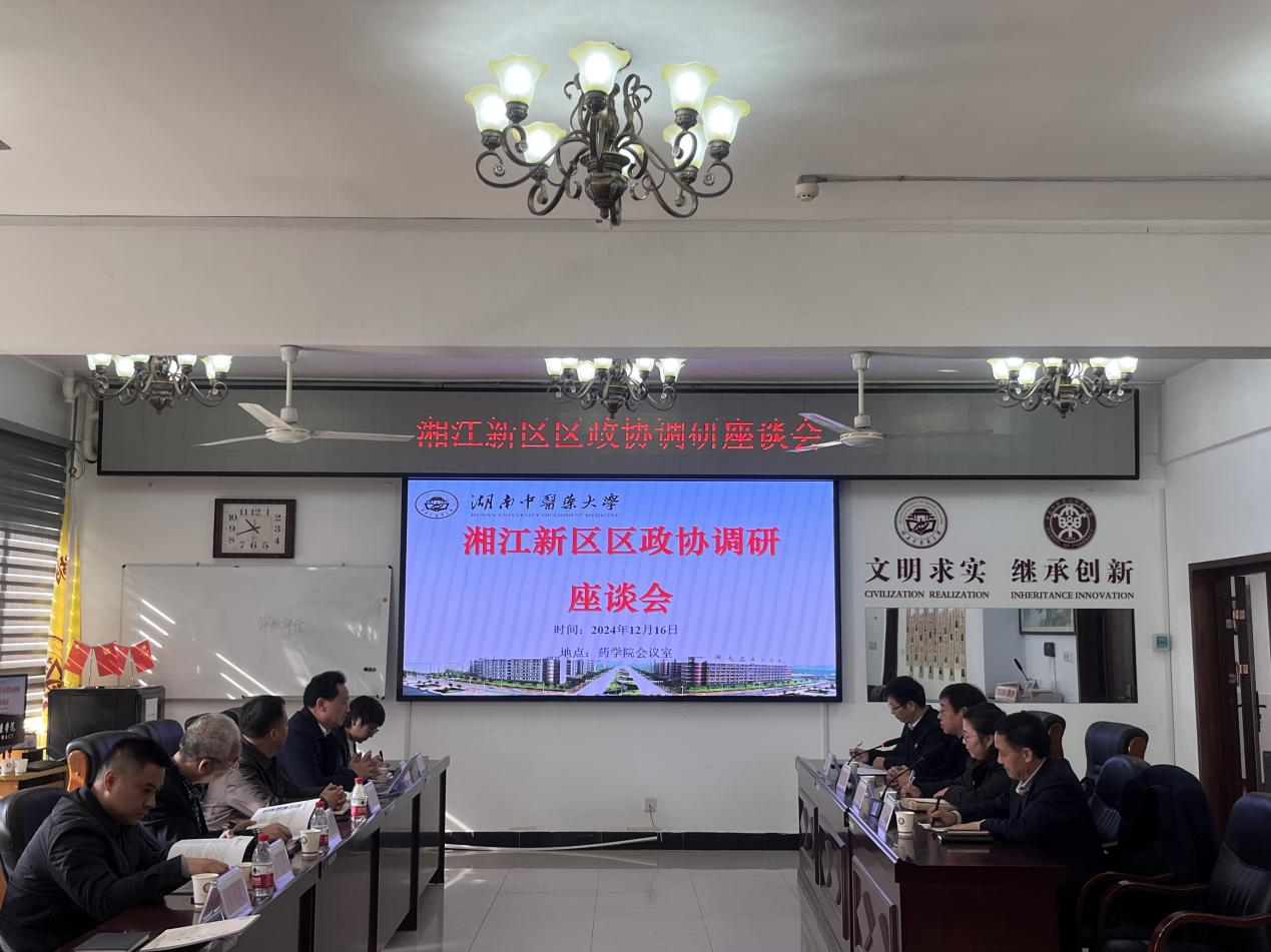 12月16日上午,湘江新区党工委、区政协党组书记、主席杨利成一行来我院调研并在yl23455永利官网会议室举行座谈会。我院党委副书记、院长王炜,副院长、省政协委员童巧珍,市政协委员刘向前,十二届省政协委员许光明以及药剂学教研室刘文龙参加座谈会。座谈会由童巧珍主持。