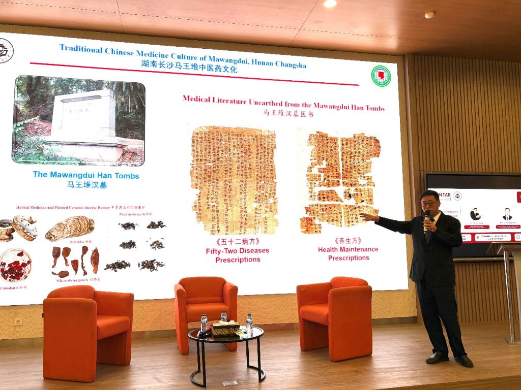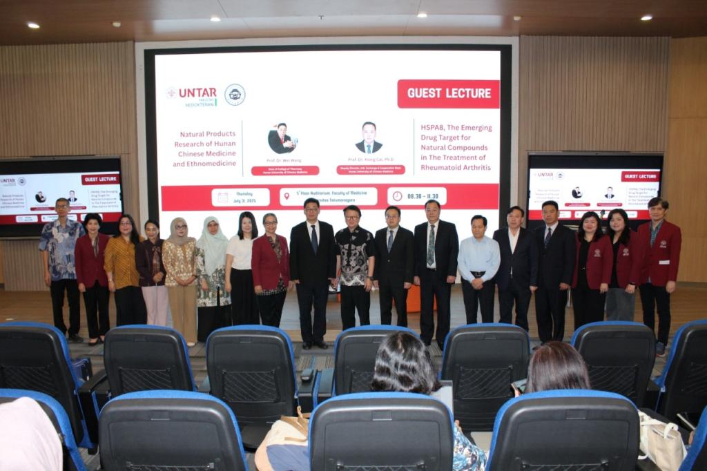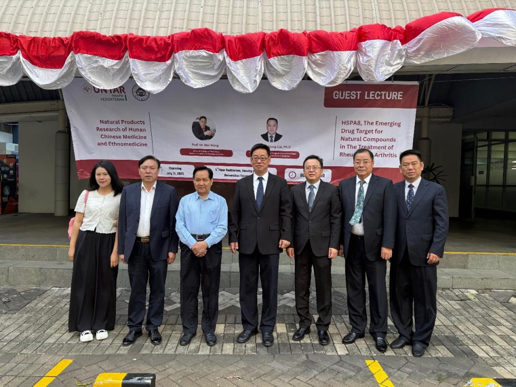 访问期间,王炜为印度尼西亚塔鲁玛纳加拉大学医学院的师生们带来了一场题为《基于湖南中医药与民族医药的天然产物研究》的精彩学术报告。报告中,王炜深入浅出地介绍了湖南丰富的中医药和民族医药资源,详细阐述了团队在天然产物研究领域的最新成果,如活性成分的精准提取、高效分离、鉴定以及药效评价等。王炜院长聚焦前沿的报告、精彩生动的讲述,引发了现场师生的浓厚兴趣和热烈讨论。