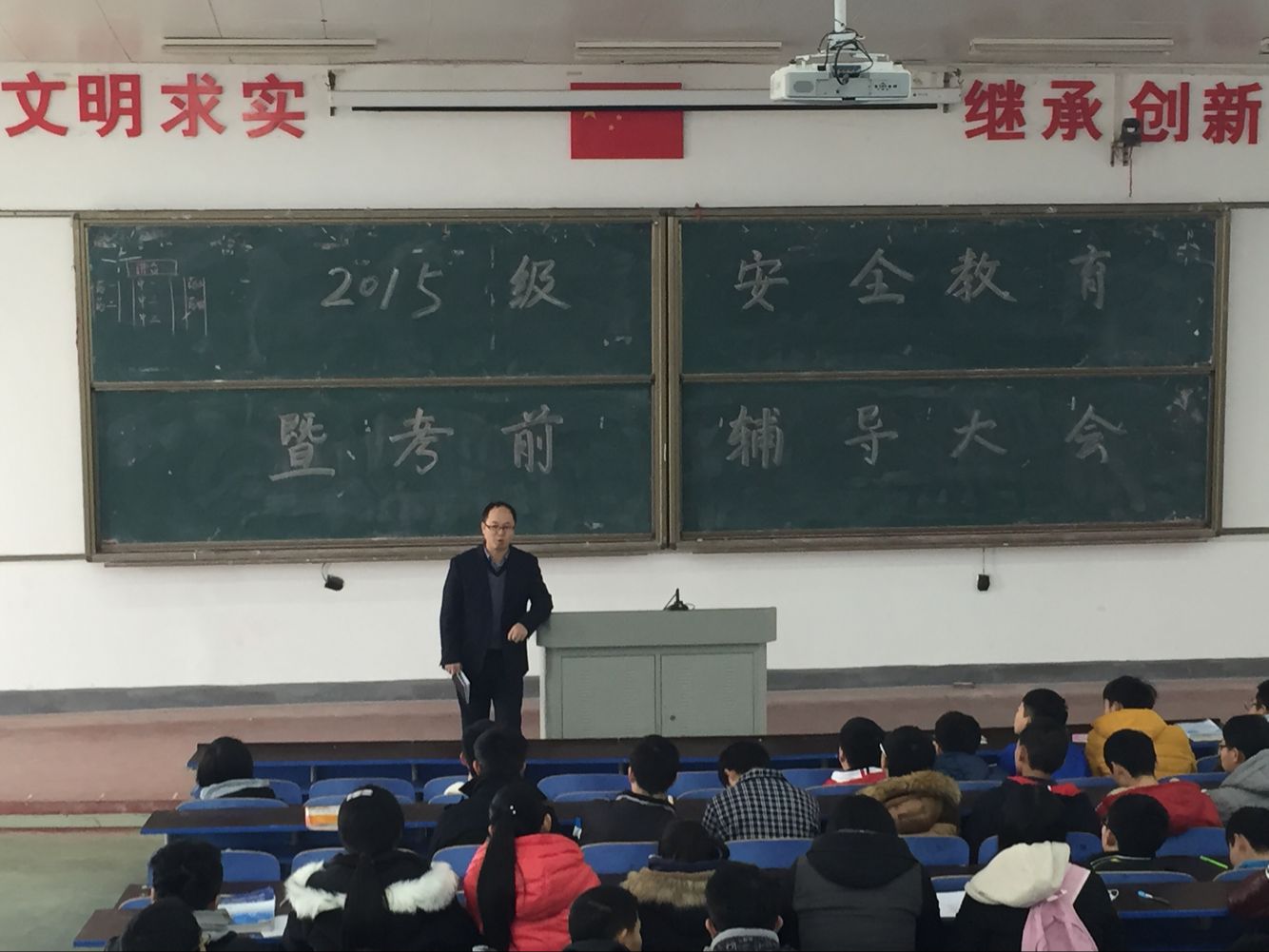 2015年12月25日10:30,yl23455永利官网2015级考假期安全教育暨考前辅导大会在2506教室召开。yl23455永利官网学生科科长李云耀老师、学生科副科长段智恩老师出席此次大会,2015级全体学生共476名到场参加此次会议。