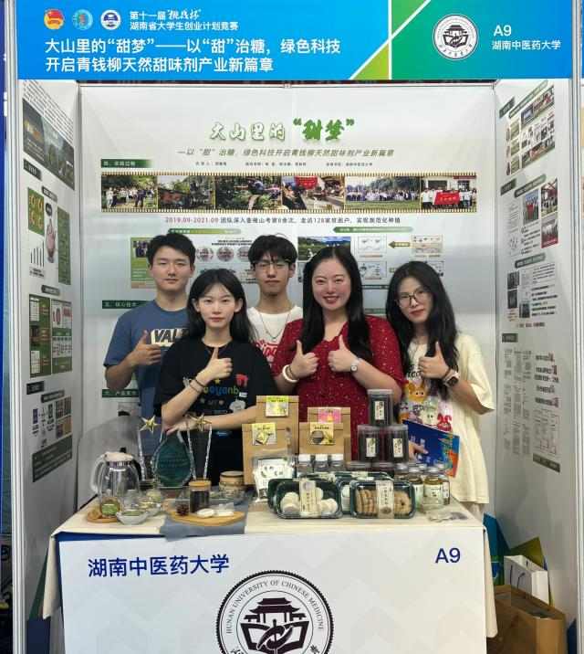 6月21日至24日,第十一届“挑战杯”湖南省大学生创业计划竞赛终审决赛在湖南信息学院举行。由我院田星等老师所指导,邹雅倩、陈靓、张睿艺等同学主要负责的《大山里的“甜梦”—以“甜”治糖,绿色科技开启青钱柳天然甜味剂产业新篇章》项目荣获该项赛事乡村振兴和农业农村现代化组别金奖。这是我院食品科学与工程专业师生连续两届获得该项省级Ⅰ类大学生竞赛金奖。据悉,该项目将被推送代表湖南省参加今年“挑战杯”国赛。