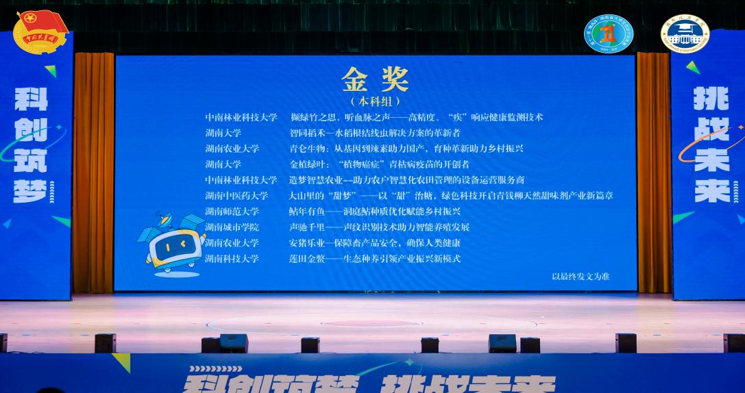 此外,由我院孟蕾等老师指导,李宇航等同学负责的《核桃“泌”语—核桃青皮外泌体开发及应用》项目荣获乡村振兴和农业农村现代化组别银奖;余黄合等老师指导,李焕杰等同学负责的《血定遏湿—土家药血筒治疗类风湿关节炎的新型开发与利用》项目荣获该项赛事科技创新和未来产业组别铜奖。