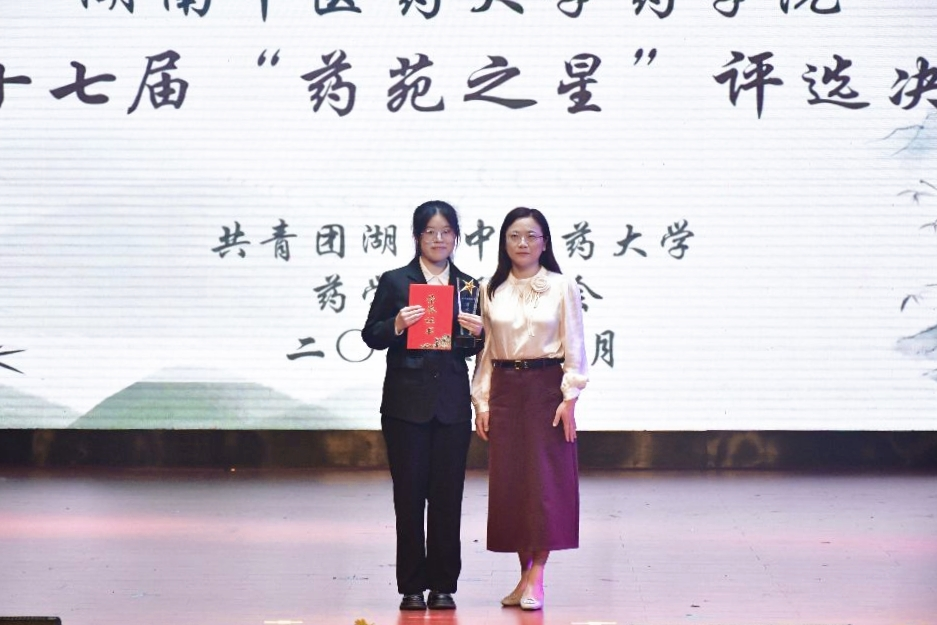 本次“药苑之星”评选共有11名候选人进入最终决赛。经过激烈角逐,22级药学2班康宁同学获得明德笃行奖、22级药学2班商亚婷同学获得学术卓越奖、22级中药学1班万佳同学获得优秀学生干奖、23级制药工程班陆飞同学获得艺韵健彩奖、23级药学2班谢卓成同学获得实践劳绩奖。